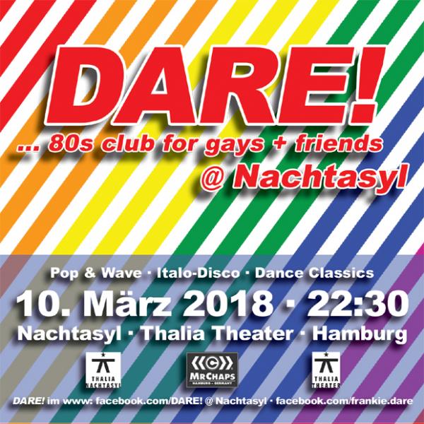 Ab 22:30 Uhr, unter dem Dach des Thalia Theaters, begrüßen wir dann unsere Gay-Community, sowie Freunde und Freundinnen die sich wie gewohnt auf ERASURE, MADONNA, PET SHOP BOYS und ABBA freuen dürfen.