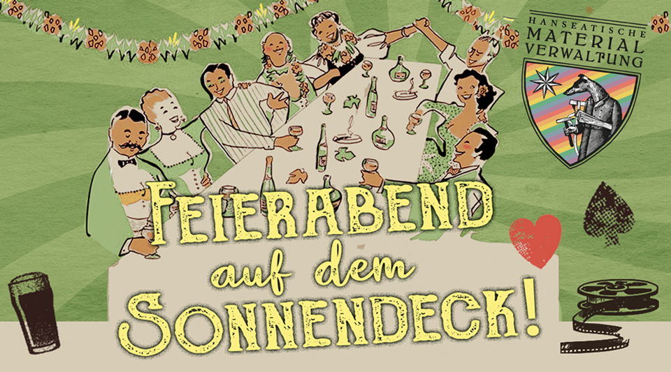 Zum pride-week-Feierabend auf dem Sonnendeck laden wir Euch ein, zum fröhlichen Beisammensein unter Bäumen, zwischen Möbeln und Requisiten, bei leckeren Drinks und mit schöner Musik!