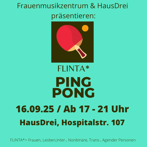 Am 16.09., ab 17 Uhr stellen wir im Hof vom HausDrei ein paar Tischtennisplatten auf für unser FLINTA*-Ping Pong.