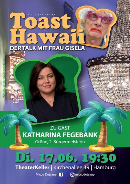 „TOAST HAWAII – die Talkshow mit Frau Gisela“ am Dienstag, 17. Juni 2025 im TheaterKeller (Kantine vom Schauspielhaus, Kirchenallee 39).