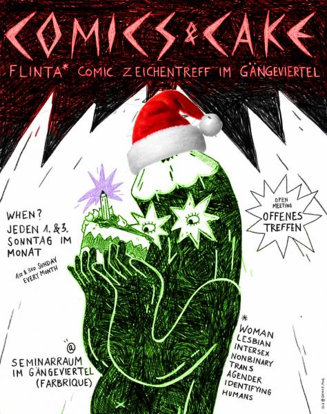 Wir laden ein zu Comics & Cake, dem FLINTA* Comic-Zeichen-Treff im Gängeviertel!