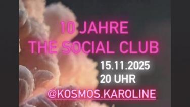 10 Jahre Social Club sind 10 Jahre Hotness and Softness mit Euch unseren wunderbaren Gästen! Das ruft danach gefeiert zu werden! So kommt und tanzt mit uns am 15.11.2025 20 Uhr im Kosmos Karoline.