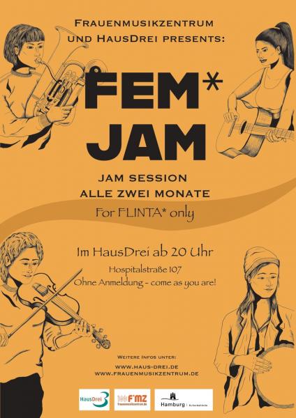Die FEM* JAM-Session soll alle zwei Monate (jeden 1.Donnerstag) in einer gemütlichen Runde stattfinden. Wir wollen Musikerinnen* in ihrer Musik bestärken, inspirieren und vernetzen.