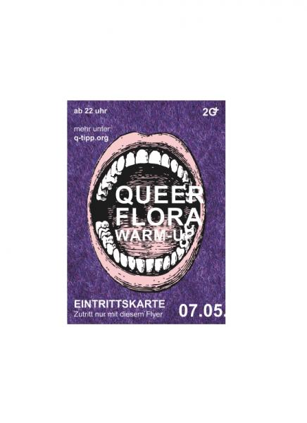 trotz globaler Krise und immer noch steigender Corona-Zahlen freuen wir uns am 7.5 die Tür der Flora für euch zu öffnen und eine rauschende Queer Flora-Sause als Warm-up vor unserer großen Party im August zu veranstalten. Einlass ist von 22-0 und bringt eure Impf-Genesen Nachweise, denn bei uns gelten noch die 2G+ Zugangsregeln. Holt euch einen Flyer von unseren Lieblingsqueerenorten in der Stadt und bringt ihn als Eintrittskarte. Flyer können auch im Schanzen Buchladen abgeholt werden. Wir freuen uns auf euch