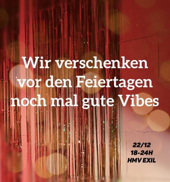 Wir verschenken vor den Feiertagen noch mal gute Vibes! Packt eure Herzensmenschen ein, genießt nette Drinks an der Bar und tanzt mit uns.