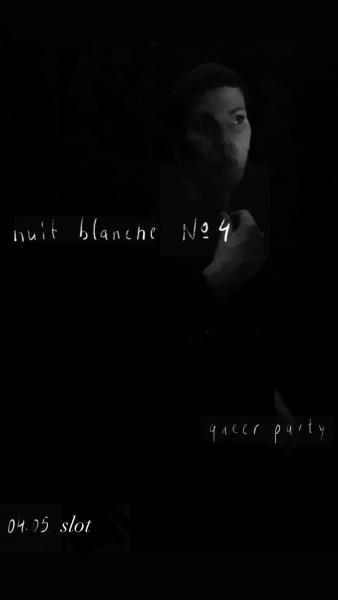 Nuit blanche (französisch: "schlaflose Nacht") ist eine neue queere Partyreihe, zu der wir euch in vierter Edition einladen möchten. Am 4.5 ab 23 Uhr wird im Slot unsere queere Utopie für eine kurze Weile zur Realität. An den Turntables: