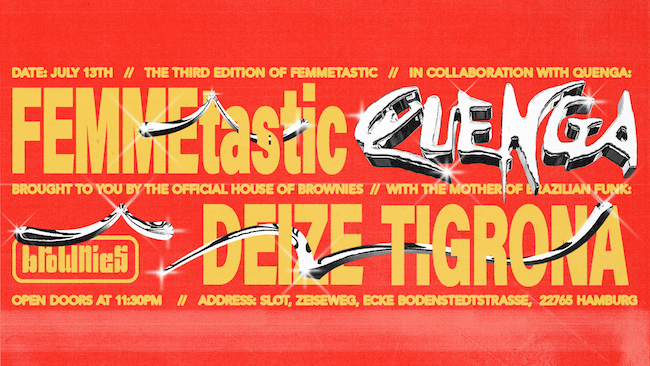 #FEMMEtastic #QUENGA #SaveTheDate #DanceFloor #Hafenklang #QueerScene #BrazilianFunk #DeizeTigrona #InternationalArtists #MusicFestival #DJEvent #DiasporicMusic #SupportArtists #LivePerformance #UnmissableEvent #soundpreta #nany #ELLEFIERCE #queerhamburg #lgbtqhamburg