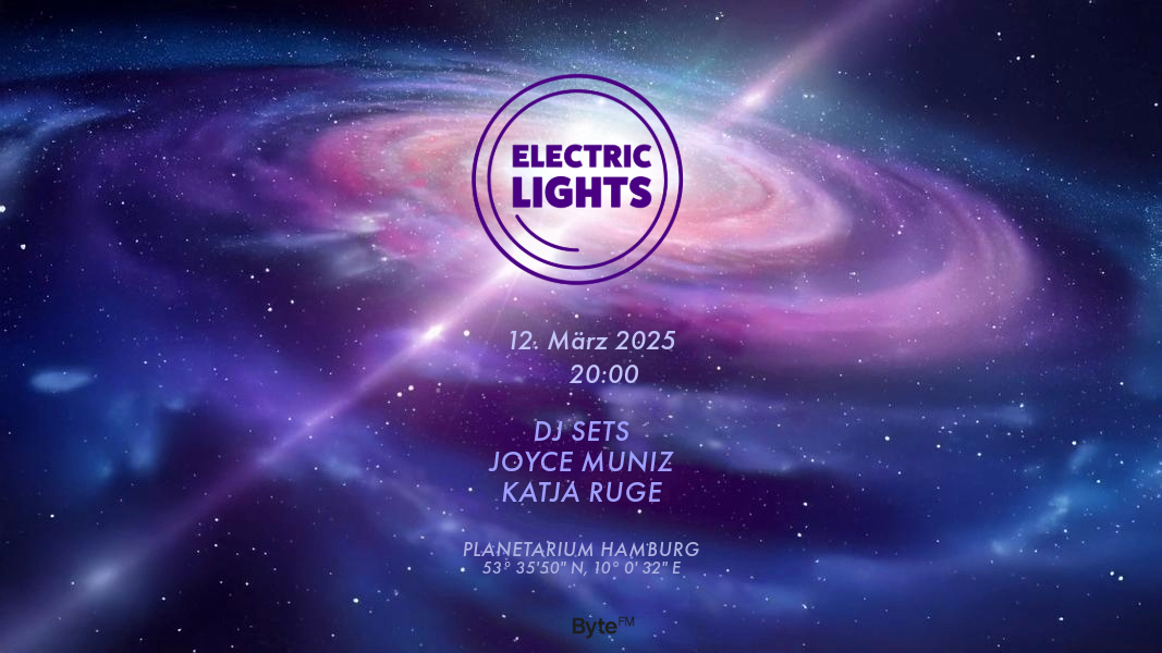 In Electric Lights geht es um die Energie und Kraft von Frauen in der elektronischen Musik: ihre Leidenschaft, ihre Erfahrungen und ihre einzigartigen künstlerischen Perspektiven. In einer außergewöhnlichen DJ & Live Set Series im Planetarium Hamburg erzählen die geladenen Künstlerinnen mit Ihren Sets ganz besondere musikalische Geschichten im Space, abseits des Clubs aber immer mit Blick auf die aktuellen Strömungen in der elektronischen Musik.