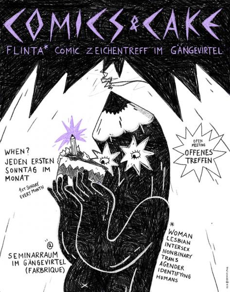 Wir laden ein zu Comics und Cake, dem FLINTA* Comic-Zeichen-Treff im Gängeviertel!
