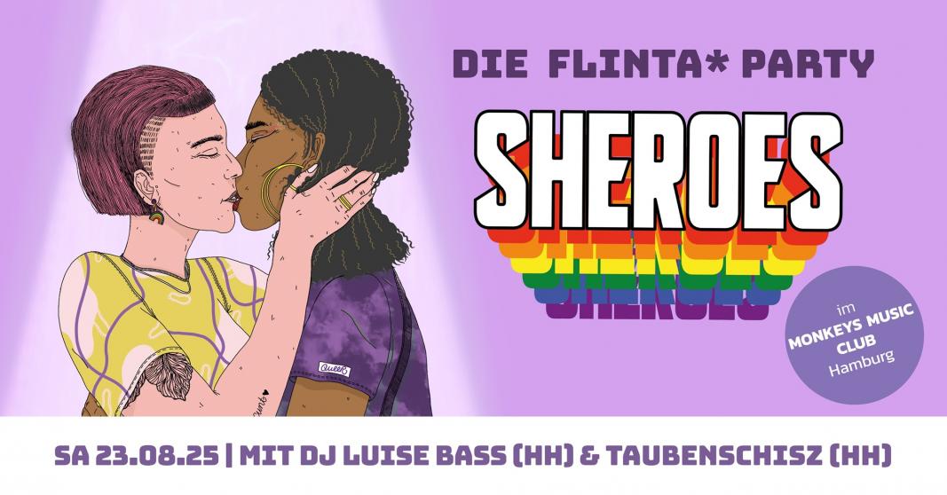 FLINTA* only Party mit einem queerfeministischen Musikmix von DJ Luise Bass & dem DJ-Duo Taubenschisz, Glitzer & viel love.
