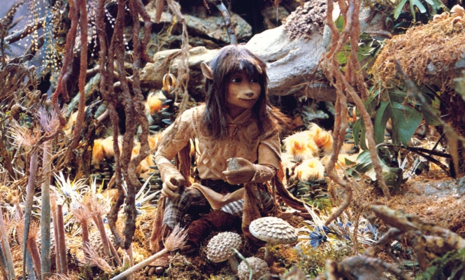 Nur ein Gelfling kann dem einst magischen Kristall sein Licht und damit die Kraft zurückbringen. Die raubvogelartigen Skekse beherrschen das Land, seitdem der Kristall vor 1000 Jahren zersplitterte. Jen, einer der letzten Gelflinge, nimmt es auf sich, den Kristall wieder zum Leuchten zu bringen. In diesem Film werden sämtliche Rollen von Hand-, Stab- und Ganzkörperpuppen verkörpert, dazu umfangreiche Animatronik. Mit Hilfe des beindruckenden Set-Designs versetzt er uns in eine magische Welt.