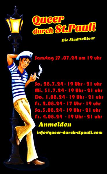 Länge der Tour: ca. 2 Stunden, inkl.1 Kneipenstopp in der ältesten Schwulenbar auf St.Pauli